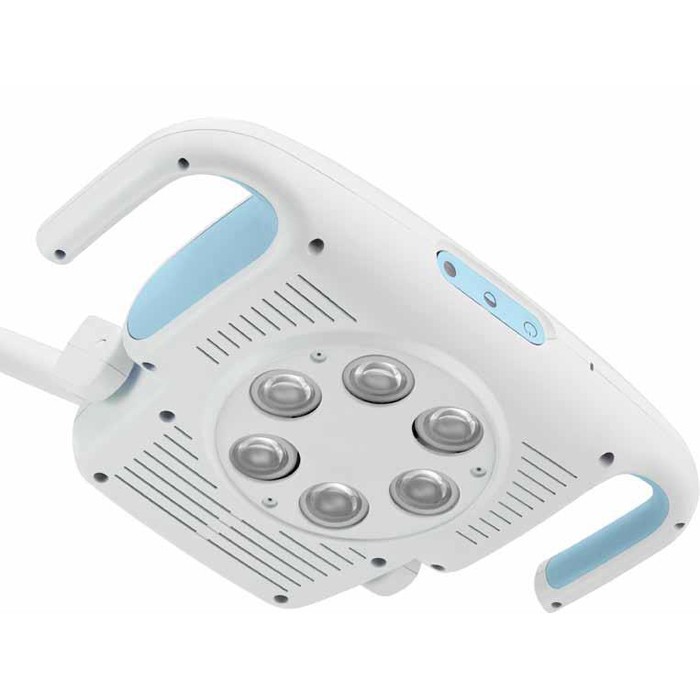 Les 6 lampes LED de la lampe d’examen GS 900 sont montées dans une grande tête d’éclairage avec 2 poignées.