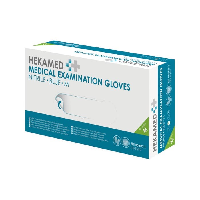 Les gants d’examen nitril Hekamed – non-poudré sont non stériles et d’une qualité extrêmement solide. La principale propriété du nitrile souple est qu’il repousse les fluides corporels, tels que le sang et la salive.