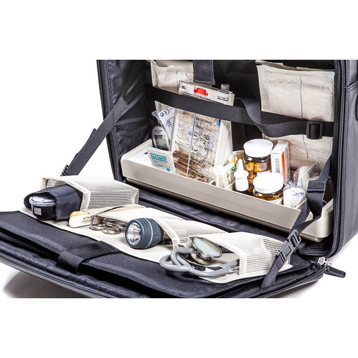 La mallette médicale Mobilo de Durasol offre un aperçu clair des instruments grâce aux 6 compartiments différents à l’intérieur du couvercle.