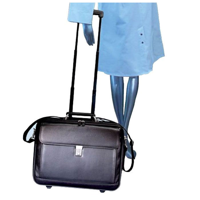La mallette médicale Dürasoal Mobilo est équipée de roues et peut être facilement tirée comme un chariot.