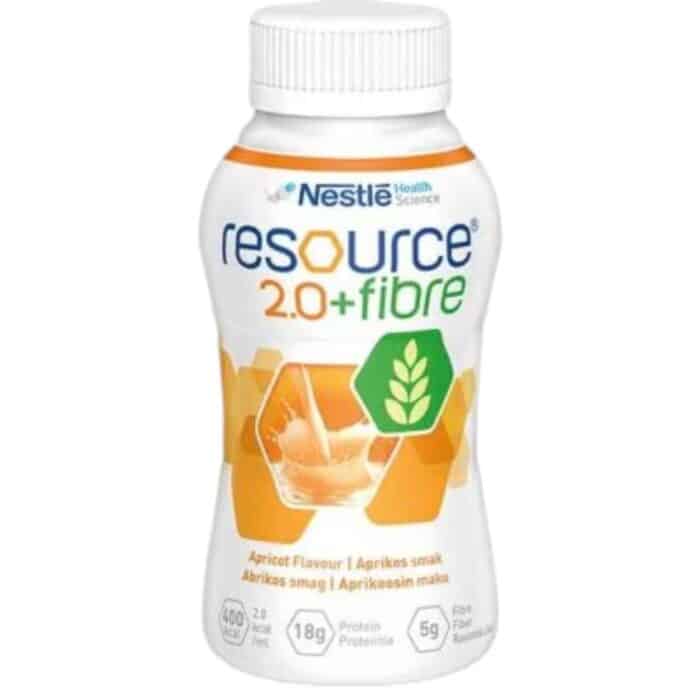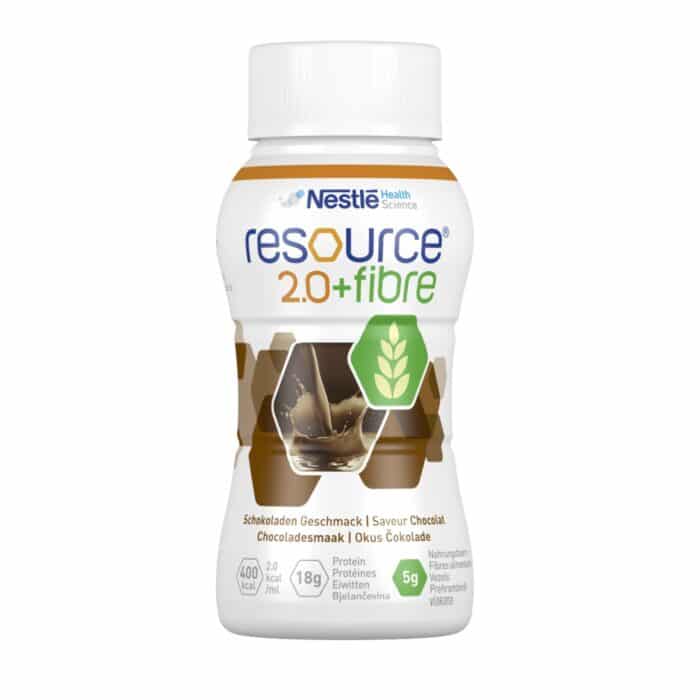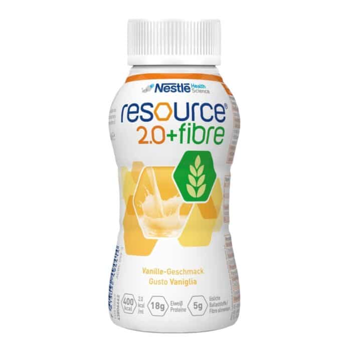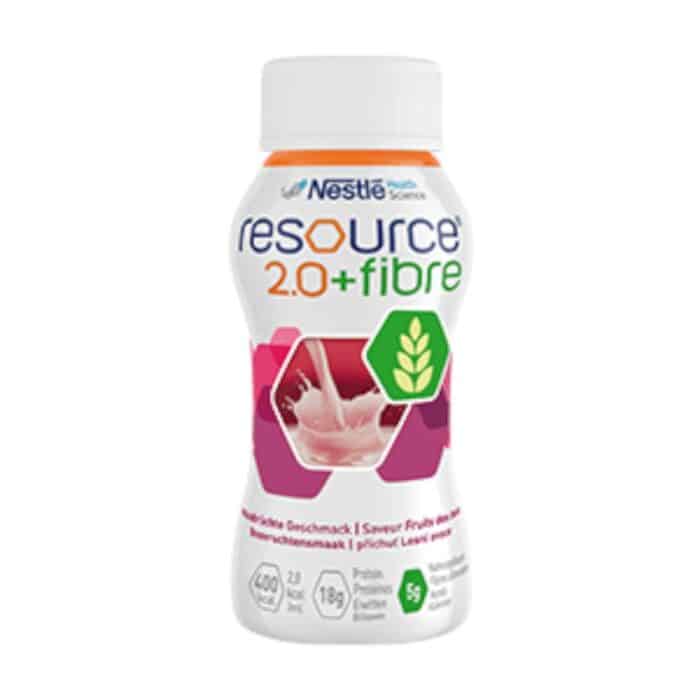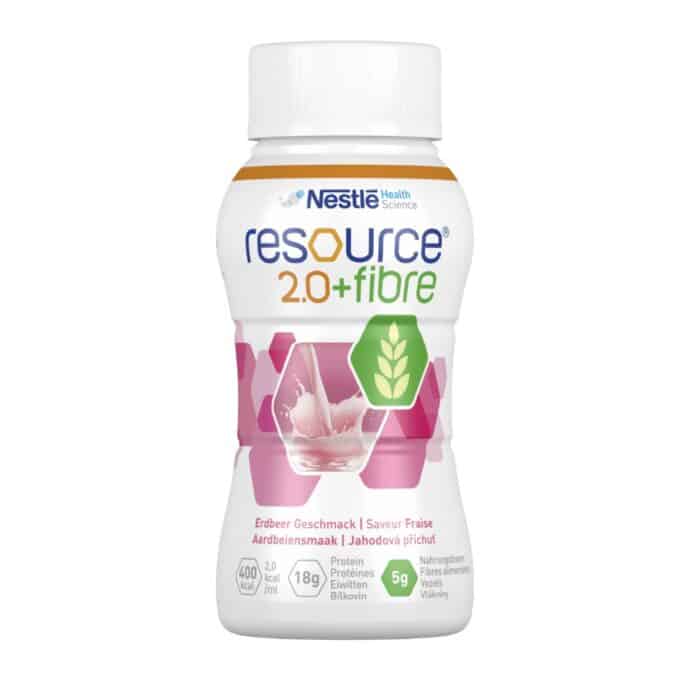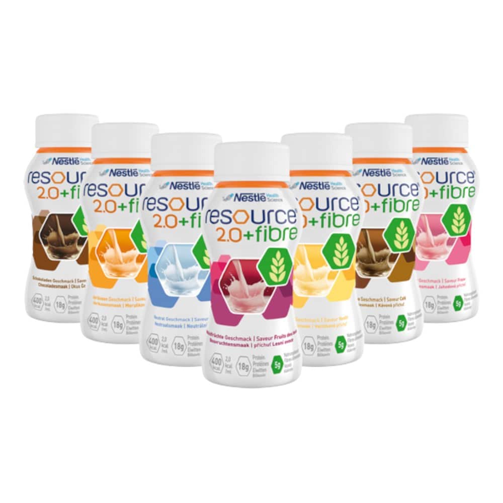 Nestlé Resource 2.0+ Fibre Nutricion à boire est une préparation prête à l’emploi à usage médical. Alimentation complète, riche en énergie (2,0 kcal/ml), en protéines (18 g/bouteille) et en fibres (5 g/bouteille). Une bouteille de Resource® 2.0+ Fibre contient 200 ml et est disponible en 7 saveurs savoureuses. Nutrition diététique en cas de malnutrition ou de risque de malnut.