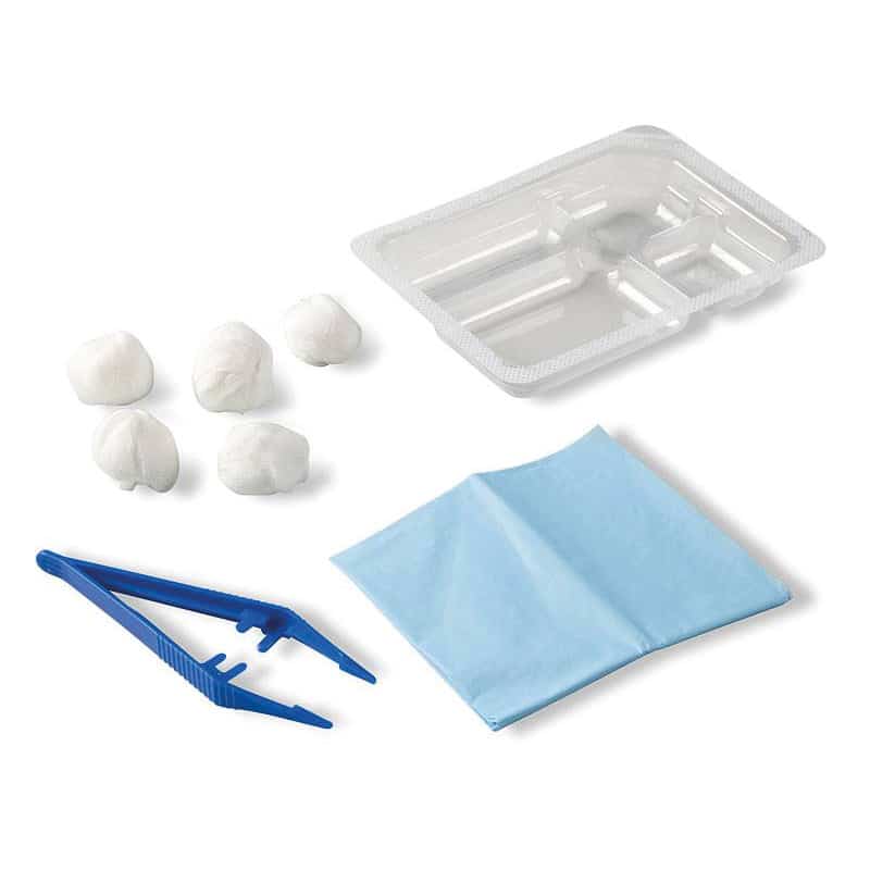 L’ensemble stérile 2 est un set de soins de plaies dans un blister rigide à 3 compartiments.