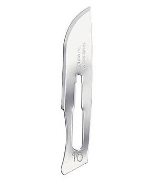 - N° 10 : Couteau chirurgical traditionnel à tranchant courbe pour les petites incisions dans la peau et les muscles.