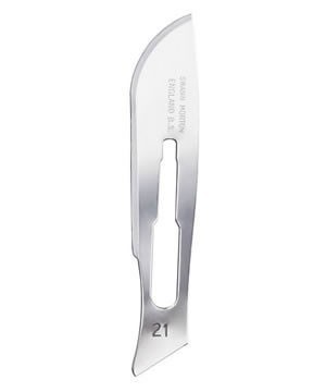 - N° 21 : Grand bord de coupe incurvé avec dos plat et flou pour les procédures orthopédiques et chirurgicales.