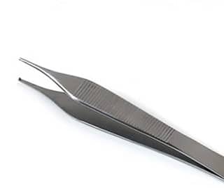 La mâchoire fine et chirurgicale, munie de petites dents, permet de saisir fermement les tissus sans glissement, ce qui est essentiel pour une manipulation contrôlée de la peau ou d’autres structures.