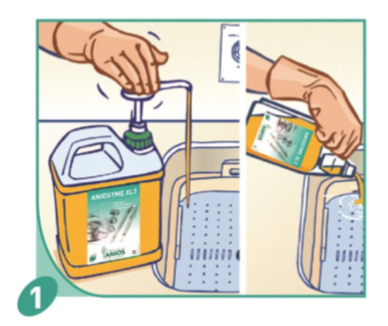 Praktisch: onze aanbeveling is hier opnieuw om gebruik te maken van volgend reinigings– en pré-desinfectiemiddel Aniosyme X3