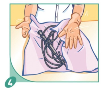 - Semi-kritisch of kritisch materiaal: verder gaan naar de volgende fase : desinfectie (zie verder).