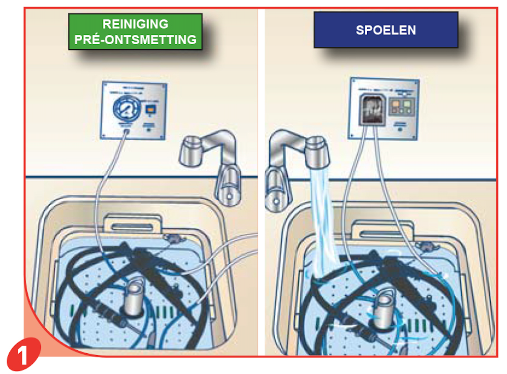 De instrumenten worden machinaal gereinigd in een instrumentenwasmachine. Aangezien dit voornamelijk de methode is die in ziekenhuizen van toepassing is, zullen we hier niet verder op ingaan.