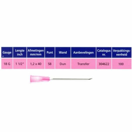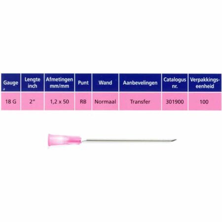 of kleurcodes. Controleer dus altijd de specificaties op de verpakking of bij uw leverancier. Injectienaalden zijn