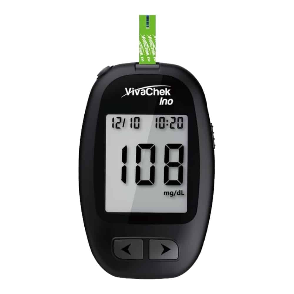 De VivaChek Ino is een bloedglucosemeter die eenvoudig te gebruiken is. De meter heeft een opslagcapaciteit van maar liefst 900 testresultaten en geeft het gemiddelde van 7, 14 en 30 dagen aan. In het menu kunt u aangeven of u voor of na een maaltijd heeft getest. De VivaChek Ino biedt u de beste prijs-kwaliteitverhouding en betrouwbare testresultaten. Bij extreme glucosewaarde wordt een hyper of hypowaarschuwing gegeven.