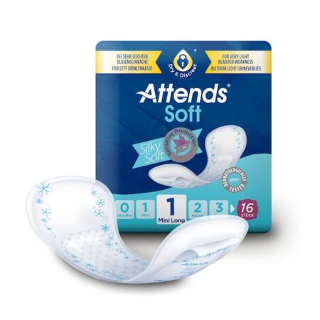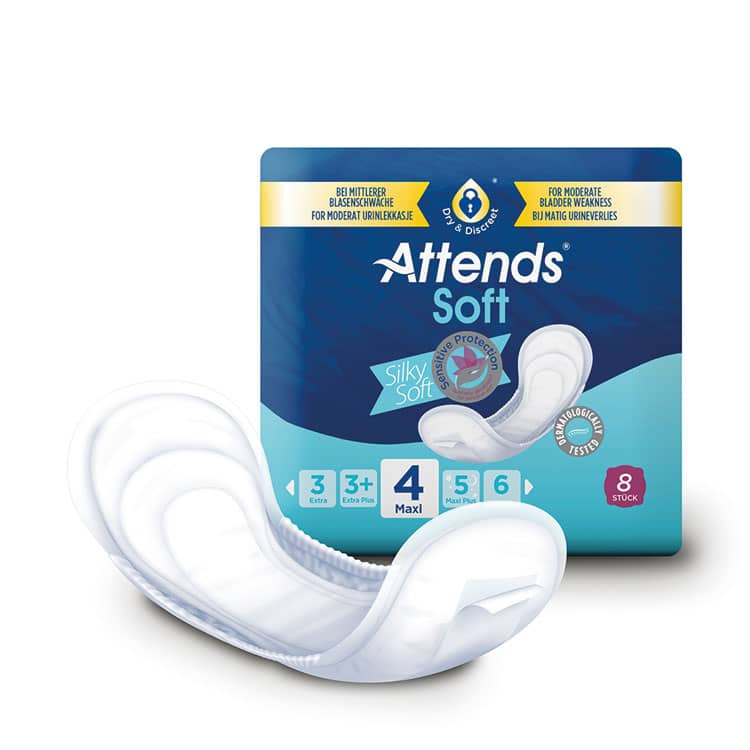 De nieuwe Attends Soft inleggers zijn beschikbaar in verschillende absorptiecapaciteiten en bieden allen een uitzonderlijk gevoel van comfort, droogheid en discretie bij lichte incontinentie.