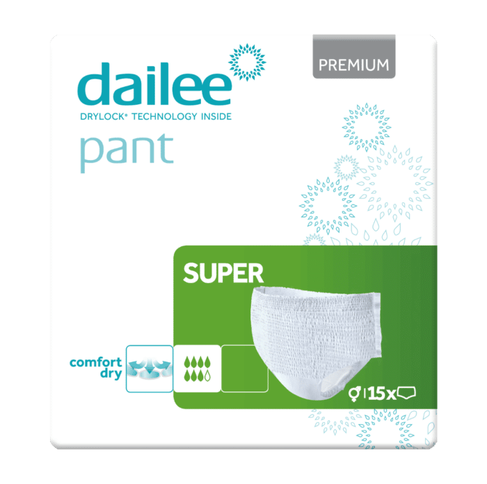 Deze dailee pant is ontwikkeld voor actieve, mobiele mensen en zwangere dames met een licht tot medium urineverlies. Eenmaal het broekje aangetrokken kan men het aan en uit doen zoals gewoon ondergoed.