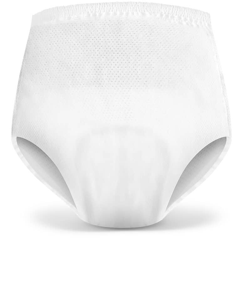 Zorg dat de maatvermelding aan de achterzijde zit, ga in het broekje staan en trek het op