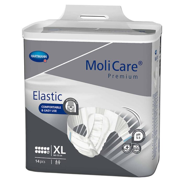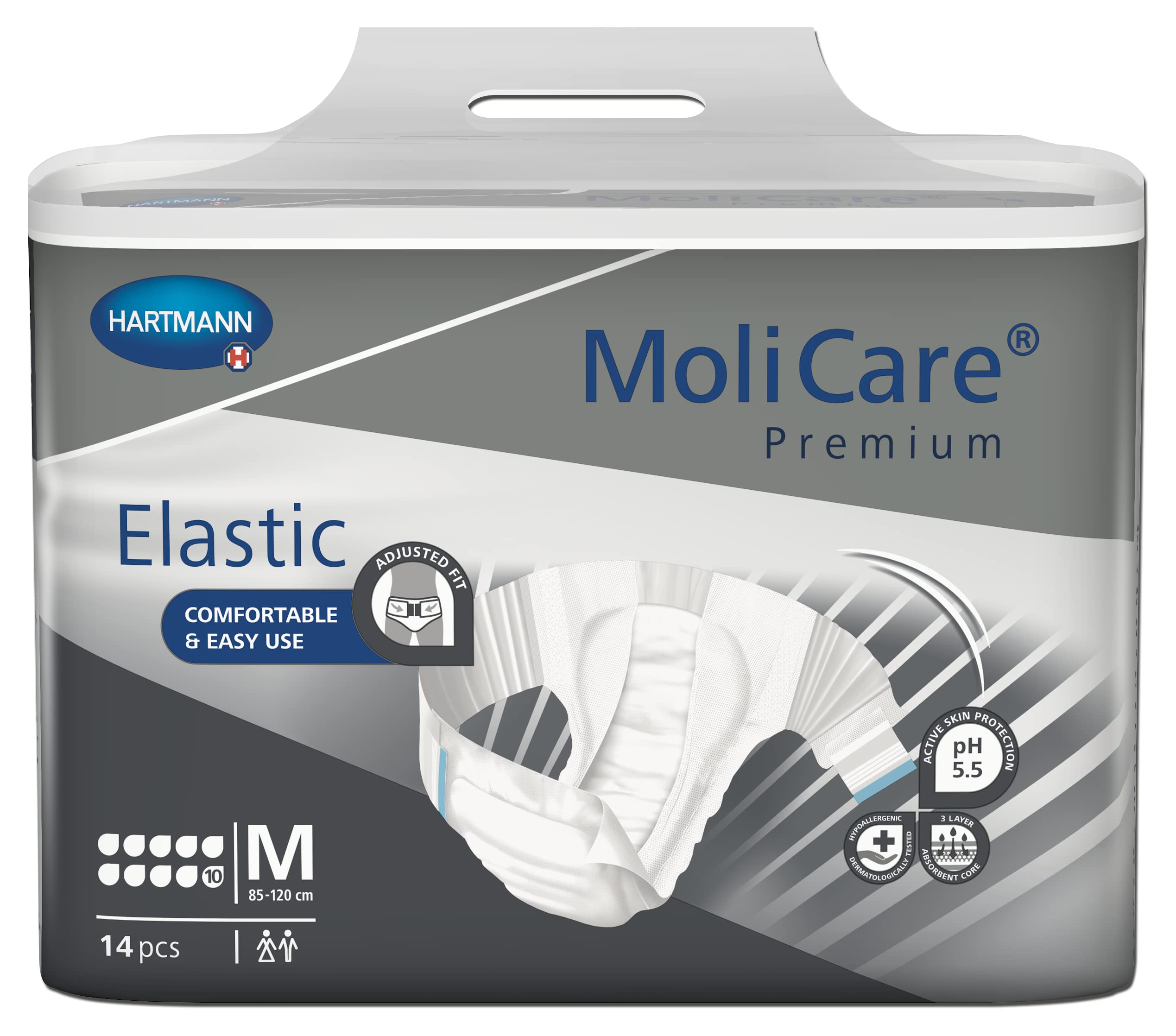 MoliCare Premium Elastic 10 druppels is een absorberende plakslip die gebruikt wordt bij maximale urine- en/of fecale incontinentie.