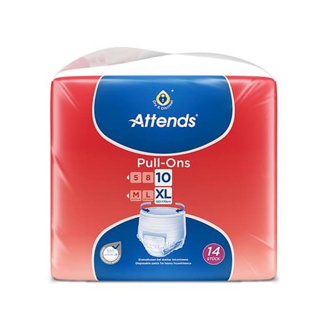 Attends Pull-Ons 10: Optrekbroekjes met een nog hogere absorptiecapaciteit voor zware urine- en/of ontlastingsincontinentie.