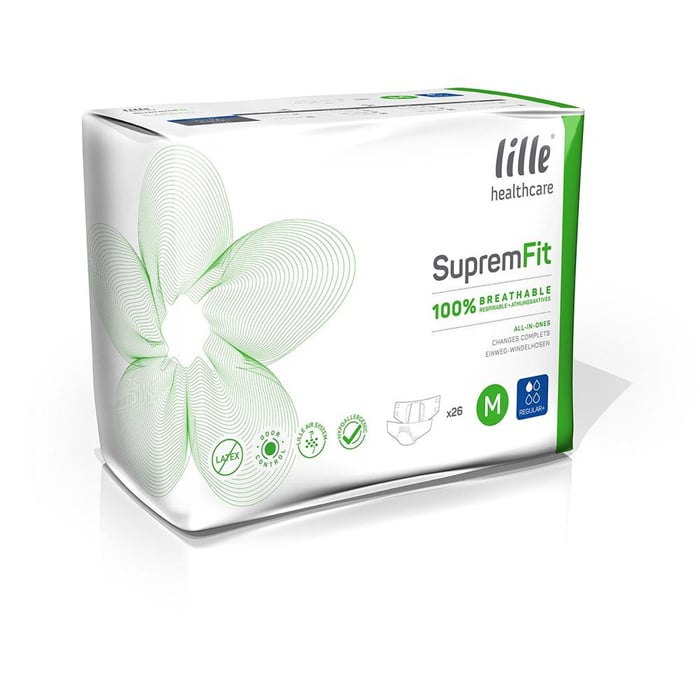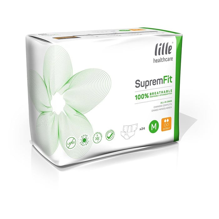 Lille Suprem Fit is een uitgebreid assortiment van 1-delige systemen met kleefstrip voor volwassenen en is speciaal ontworpen voor een matige tot zware vorm van incontinentie.