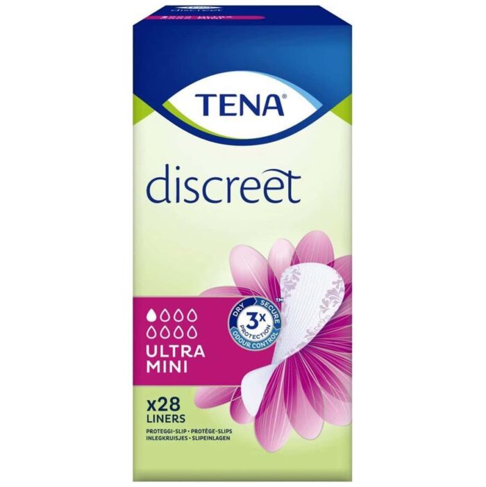 - TENA Discreet Ultra Mini Plus is een extra lang inlegkruisje dat discrete bescherming biedt voor vrouwen met licht urineverlies tijdens lichamelijke activiteiten of zelfs bij het hoesten of niezen. Het is zijdezacht, absorbeert veel beter dan een gewoon inlegkruisje en is voorzien van micro PROTEX™ om geurtjes en vocht direct vast te houden.