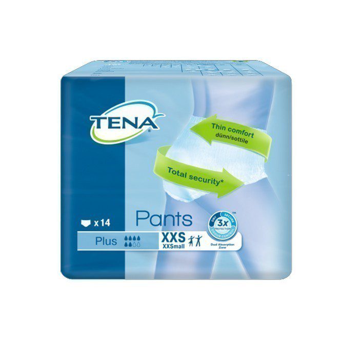 TENA Pants Plus is een comfortabel, ademend wegwerpbroekje voor mannen en vrouwen, dat drievoudige bescherming biedt tegen lekken, geurtjes en een vochtig gevoel. Dankzij snelle absorptie, anti-lekrandjes, geurcontrole en een flexibele pasvorm blijft de huid droog en fris. Eenvoudig in gebruik en discreet wegwerpbaar.