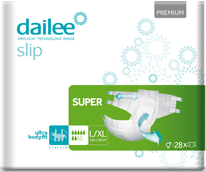 De Dailee Slip Premium Super biedt uitstekende bescherming voor mensen met matige tot ernstige incontinentie. Met een absorptievermogen van 2200 ml is deze slip geschikt voor urineverlies van enkele druppels tot grotere hoeveelheden, evenals voor het opvangen van ontlastingsverlies.