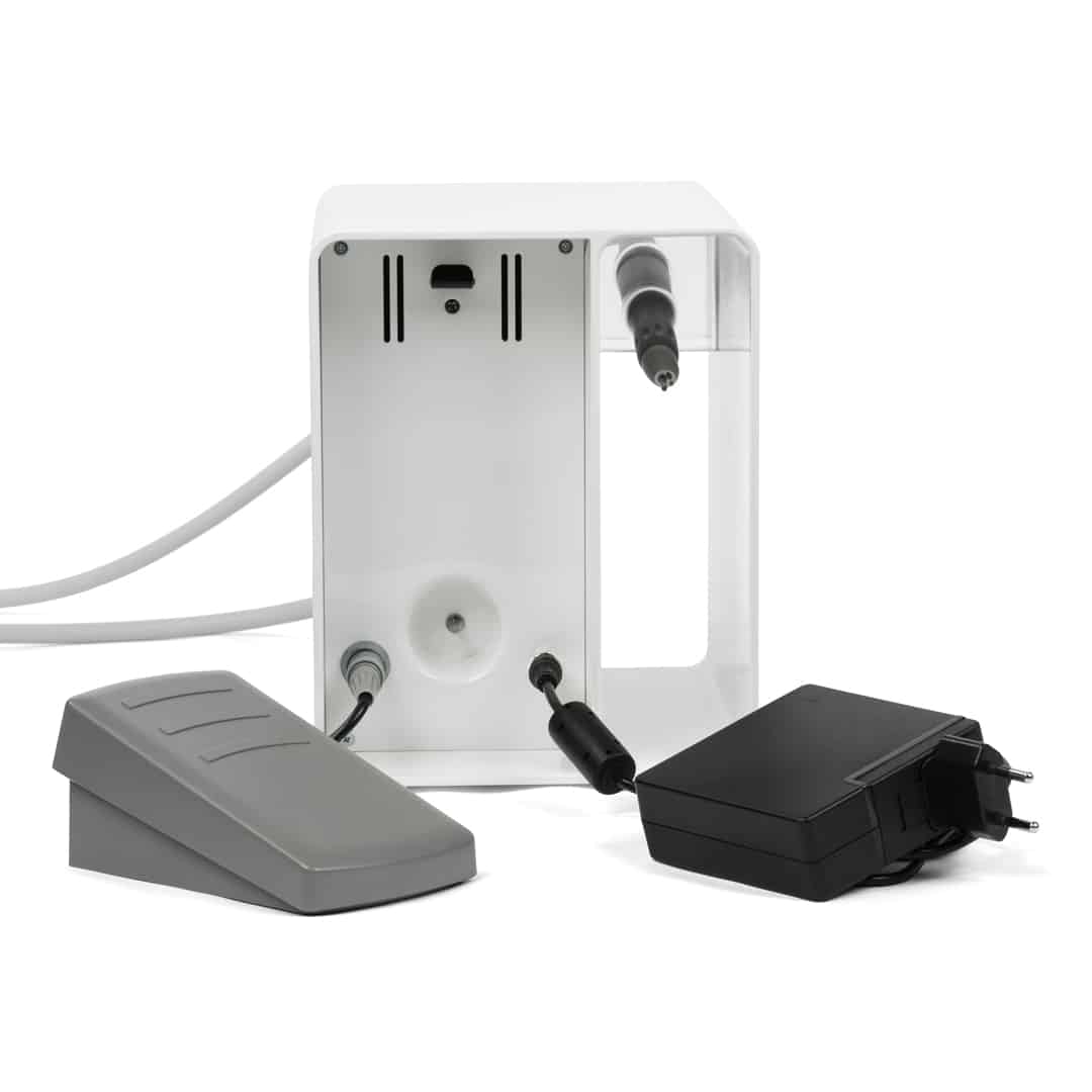De Mastermobile heeft een stopcontact en een aansluiting voor een voetpedaal zodat de gebruiker er makkelijk kan mee werken.