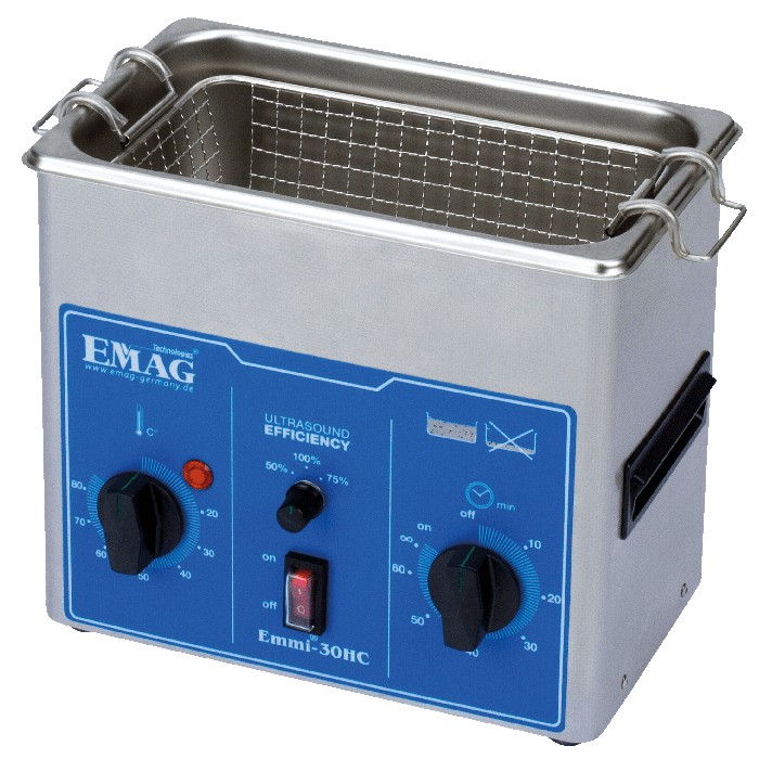 De EMMI 30HC ultrasoonreiniger biedt een grondige en veilige manier van reinigen, zonder borstelen, schrapen of krassen. Dankzij de ultrasone frequentie van 45 kHz wordt vuil op een uiterst efficiënte manier losgetrild, zelfs op moeilijk bereikbare plaatsen.