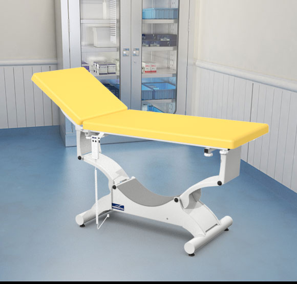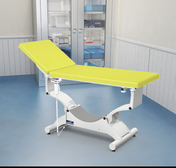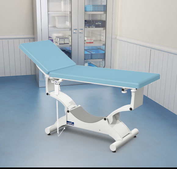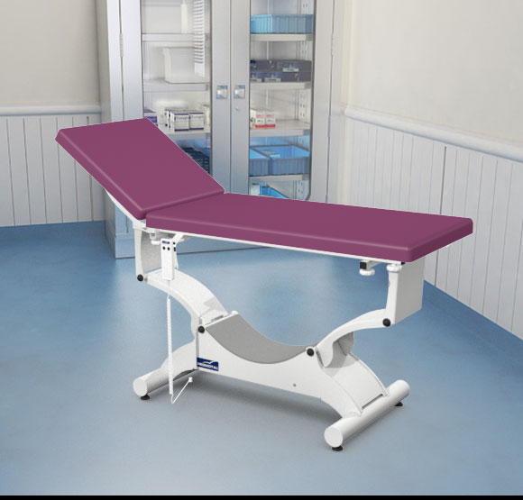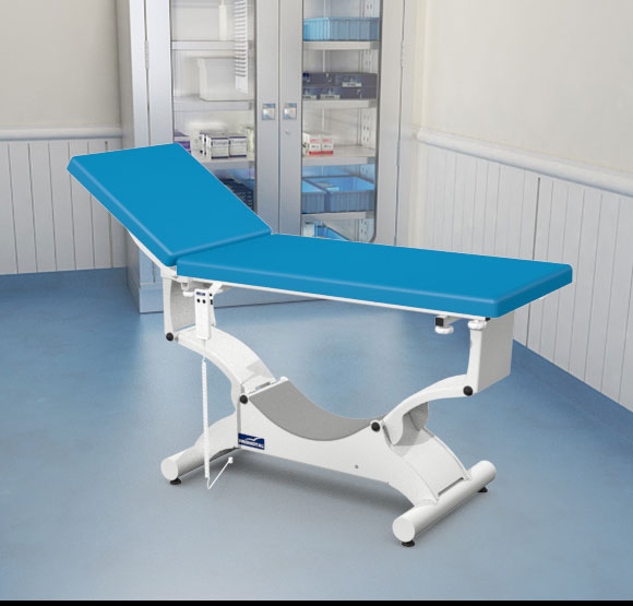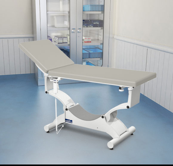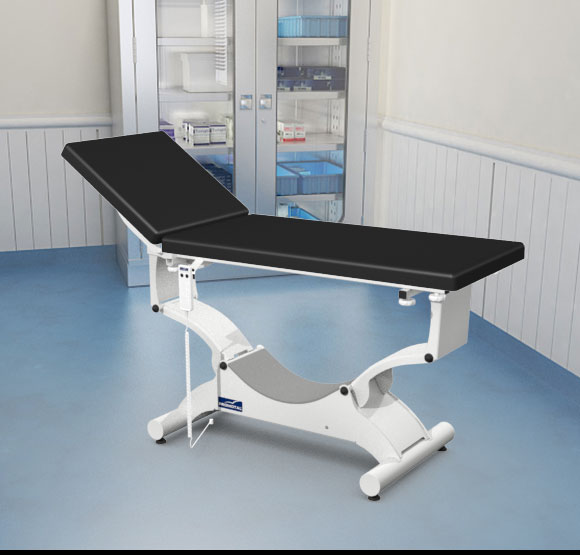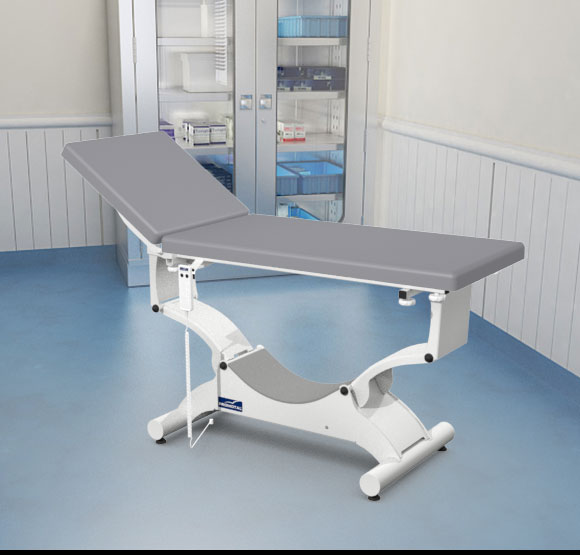 Quest onderzoekstafel – plat ligvlak 65 cm breedte – elektrisch hoog/laag + hellende functie (trendelenburg en anti-tendelenburg) + Rollend onderstel (Block ‘n Roll) + Elektrische rugverstelling