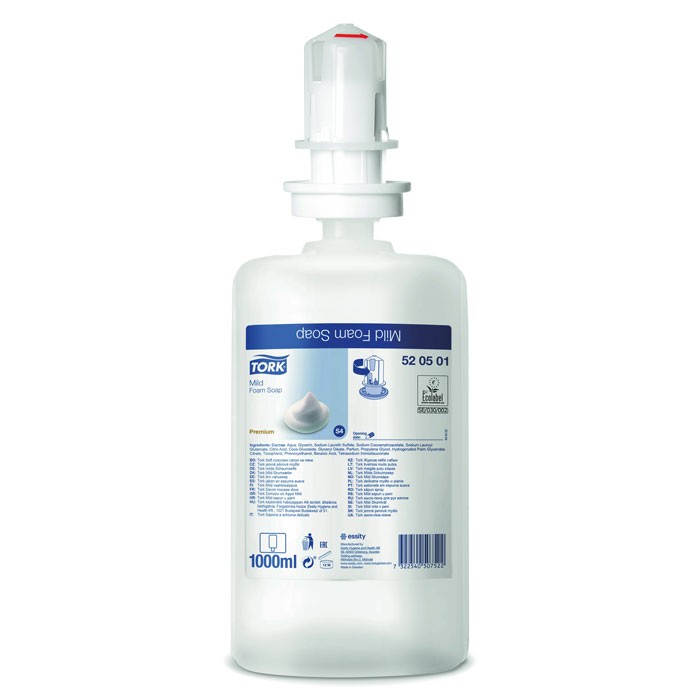 Biedt verzorging voor alle huidtypes. Tork Mild Foam Soap heeft een frisse geur en bevat vochtinbrengende, verzorgende ingrediënten. Ze zorgt voor een rijk en crèmeachtig schuim voor zachte handreiniging. Geschikt voor de schuimzeepdispensers van Tork, die eenvoudig te gebruiken zijn en elke gebruiker een goede handhygiëne bieden.