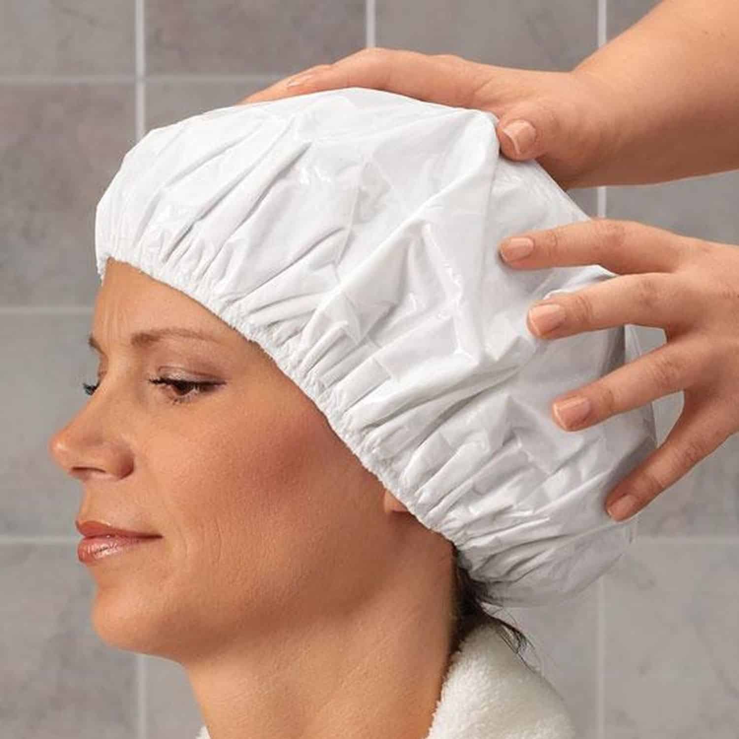 - Plaats de Shampoo Cap op het hoofd en zorg dat alle haren bedekt zijn. Laat de oren vrij.
