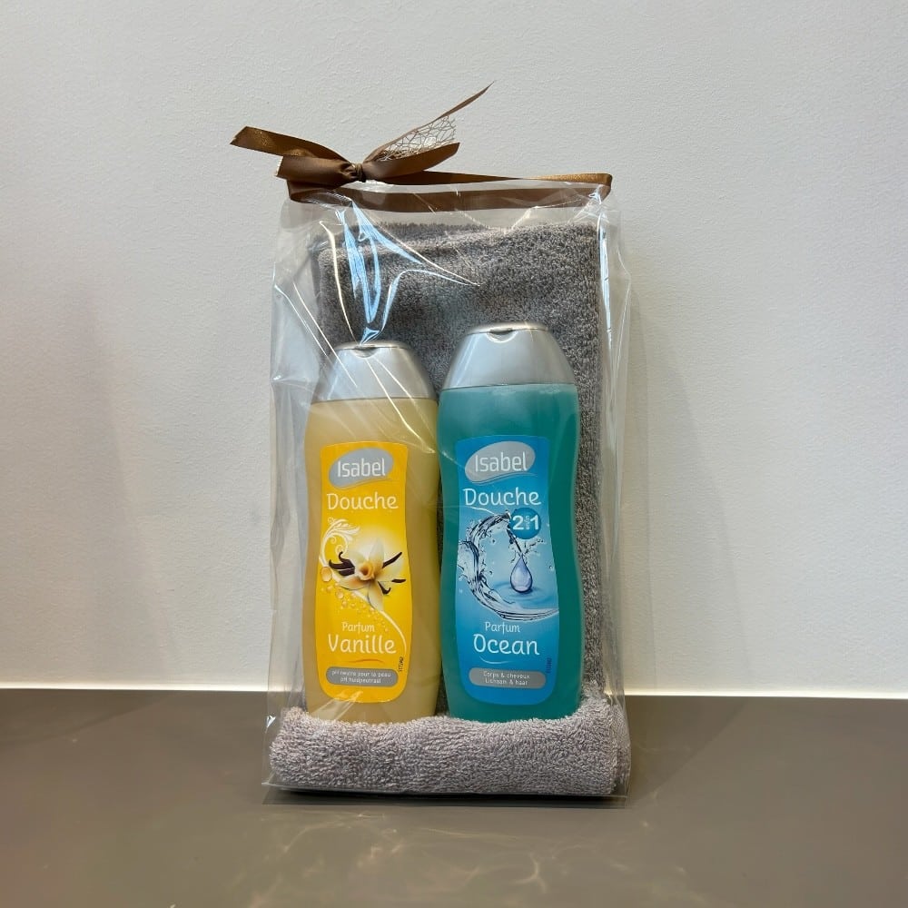 Geschenkpakket voor het eindejaar (Handdoek + washandje + 2x douchegel)