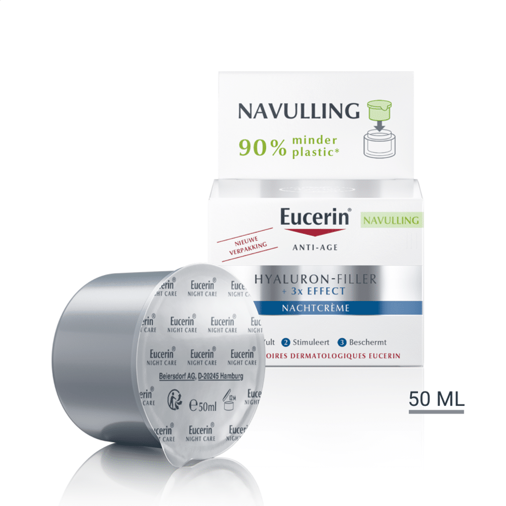 De navullingen van Hyaluron-Filler +3x Effect Nachtcrème bevatten 90% minder plastic dan de reguliere Hyaluron-Filler potjes.