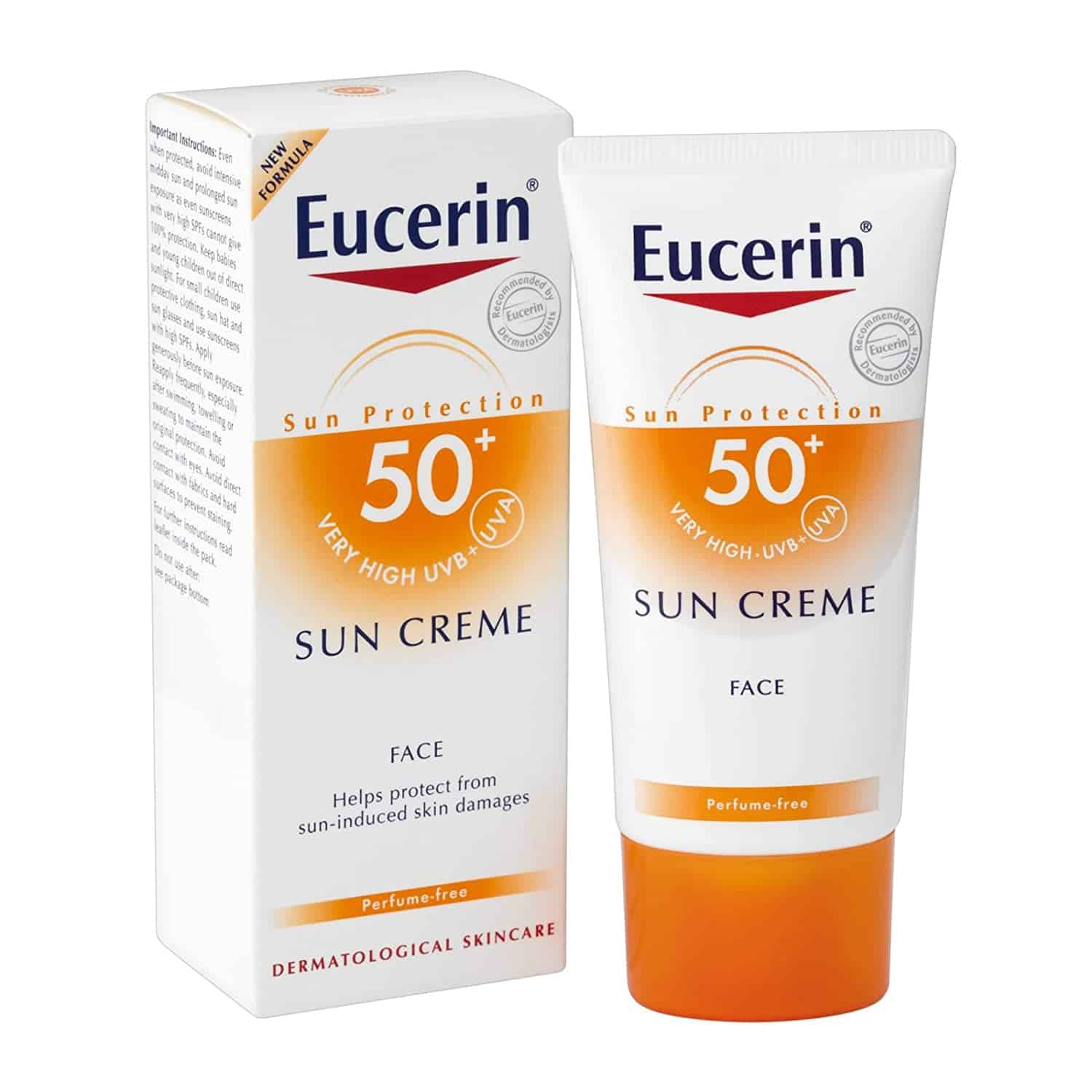 Eucerin Sun Crème SPF 50+ is een geavanceerd zonnebescherming voor het gezicht dat specifiek is ontworpen om te beschermen tegen huidveroudering door de zon en pigmentvlekken. Voor de normale en droge huid. Waterbestendig.