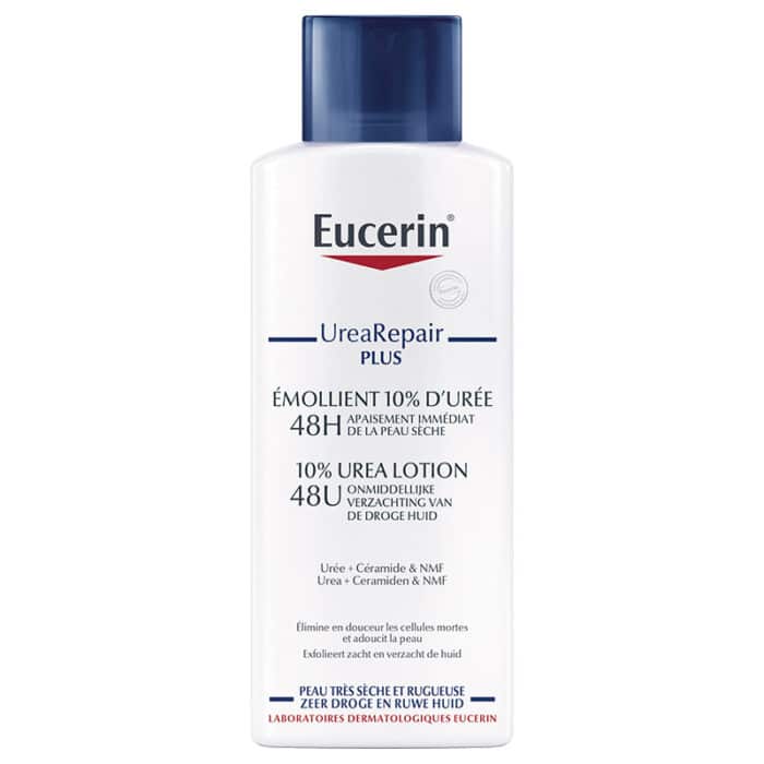 Eucerin UreaRepair PLUS Lotion 10% Urea ondersteunt actief het afschilferen van de schilferige huid en vermindert de jeuk.