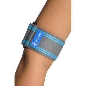 Eenvoudig elleboogbandage met verstelbaar drukniveau dankzij een klittenbandsluiting met aanspanriem. Verlicht de pijn bij een tenniselleboog door lokale druk.