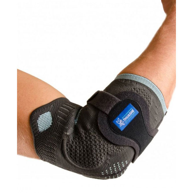 De Thuasne Silistab Epi elleboogbrace verlicht pijn bij een tenniselleboog door de combinatie van stevige lokale druk en een masserende compressie. De siliconen pads en compressieweefsel hebben een verzachtende werking. De brace is voorzien van anatomische gevormd weefsel met comfortzones ter hoogte van de elleboogholte en gepatenteerde markers voor de juiste positie op de elleboog;