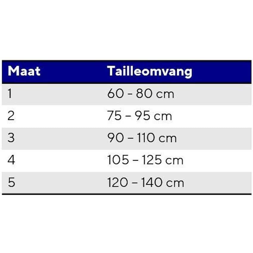 Neem de omtrek van uw taille. Lees in de tabel af welke maat u moet hebben en selecteer in het menu uw juiste maat. Bij twijfel tussen twee maten kiest u voor de grootste maat in de rugbrace.