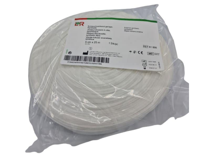 Ons Buisverband – geribbeld – 25m ook wel bekend als stockinette, is dé ideale oplossing voor medische toepassingen zoals orthopedie, dermatologie en traumatologie.