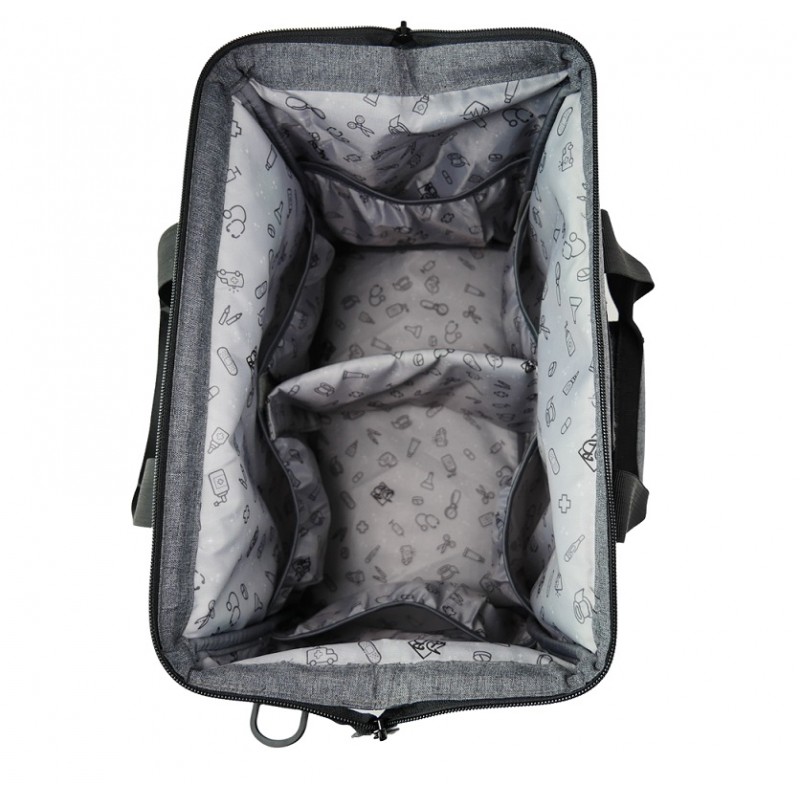 - Een hoofdvak met 6 vakken en 1 verwijderbare klittenbandverdeler. De grote tweeweg rits opening geeft gemakkelijk toegang tot diagnostische instrumenten en verzorgingsmateriaal