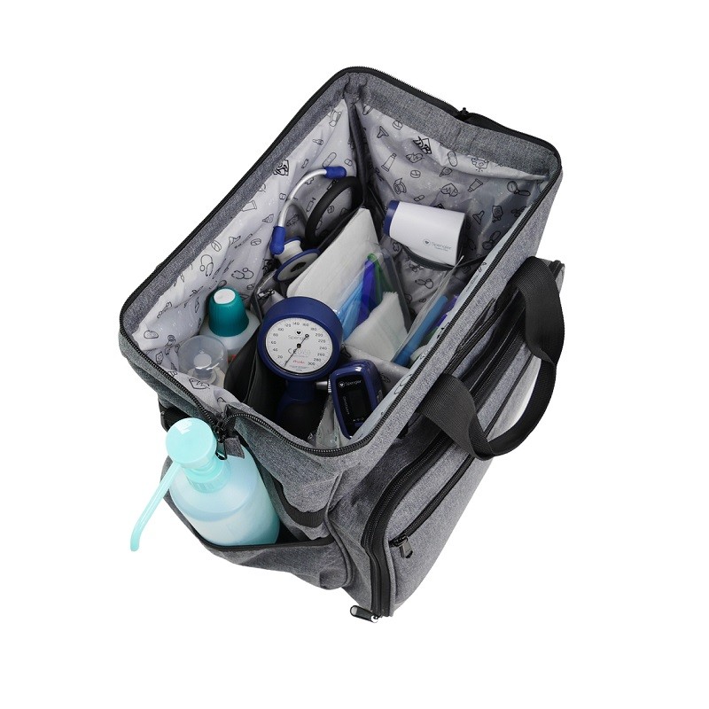 Dankzij de tweezijdige opening en de vele vakken/compartimenten kunnen alle medische apparatuur en diagnose-instrumenten die gezondheidswerkers nodig hebben gemakkelijk worden opgeborgen en bereikt.