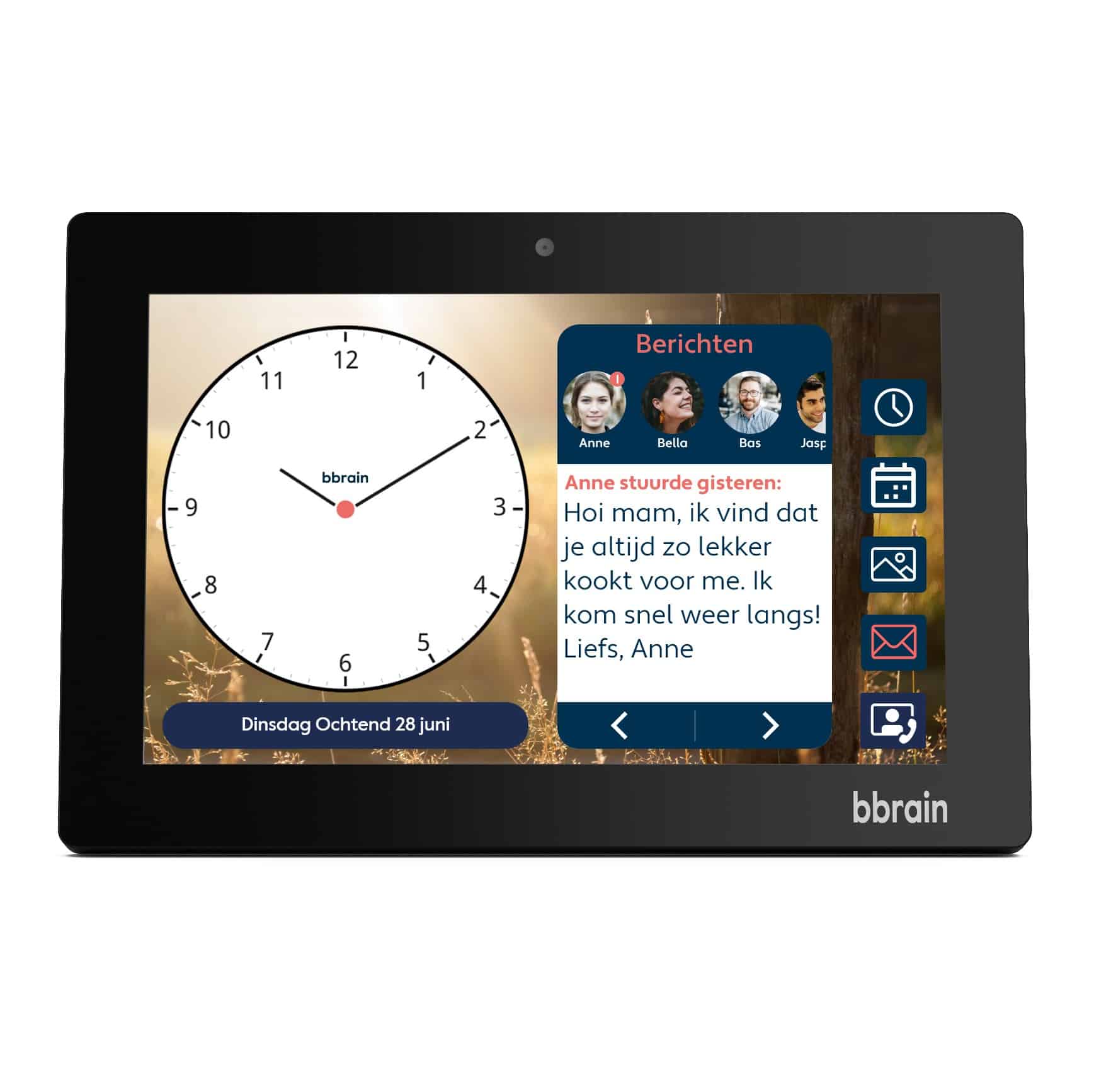 Dankzij de beeldbelfunctie sta je direct in contact met je naaste zonder digitale vaardigheden. Handig als je niet altijd de mogelijkheid hebt om langs te gaan maar elkaar toch graag wilt zien en spreken.