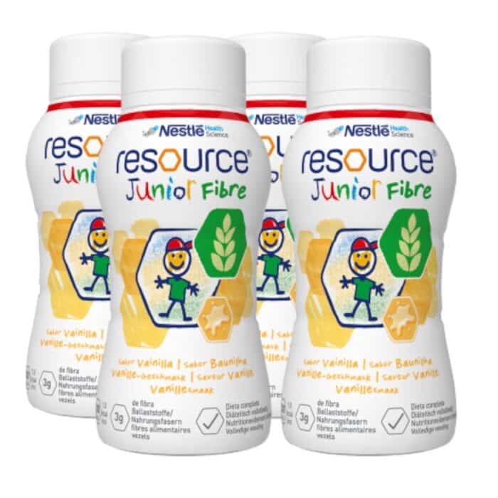 Nestlé Resource Junior Fibre drinkvoeding is een energierijke drinkvoeding bij (risico op) ondervoeding en bij een verhoogde energiebehoefte voor kinderen vanaf 1 jaar.