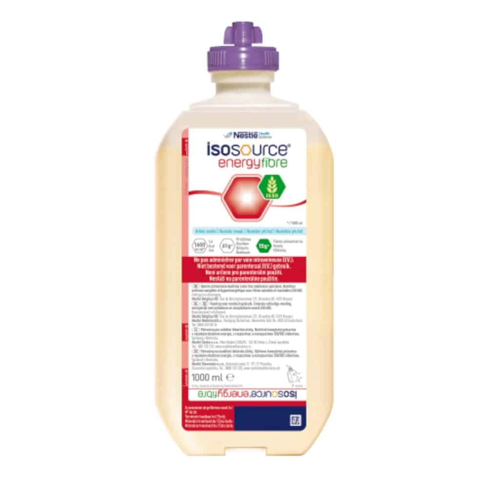 Nestlé Isosource Energy Fibre is een energierijke, volledige sondevoeding (1,6 kcal/ml) met 15% eiwitten en een balans van oplosbare en onoplosbare vezels (50:50). Deze voeding is ideaal voor patiënten met een verhoogde energiebehoefte of een noodzakelijke beperking van de vochtbehoefte, en kan als enige voedingsbron worden gebruikt.