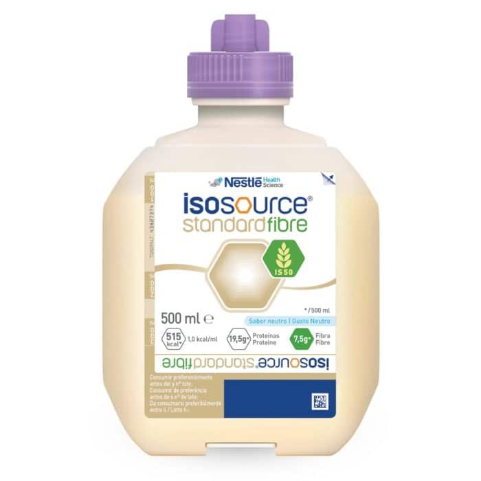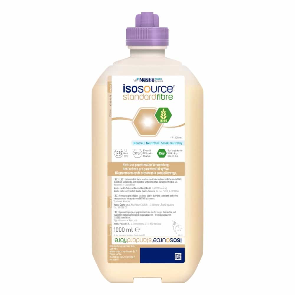 Nestlé Isosource Standard Fibre Enterale Sondevoeding is een volledige, isocalorische sondevoeding (1,0 kcal/ml) met 16% eiwitten en een balans van oplosbare en onoplosbare vezels (50:50). Dit maakt het geschikt voor patiënten met ondervoeding of risico op ondervoeding, en het kan als enige voedingsbron worden gebruikt.