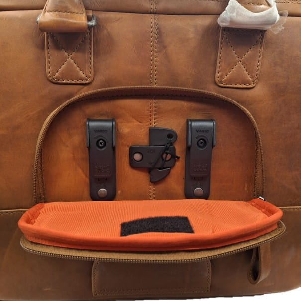 - Verstelbare, afneembare schouderriem + twee leren handvaten