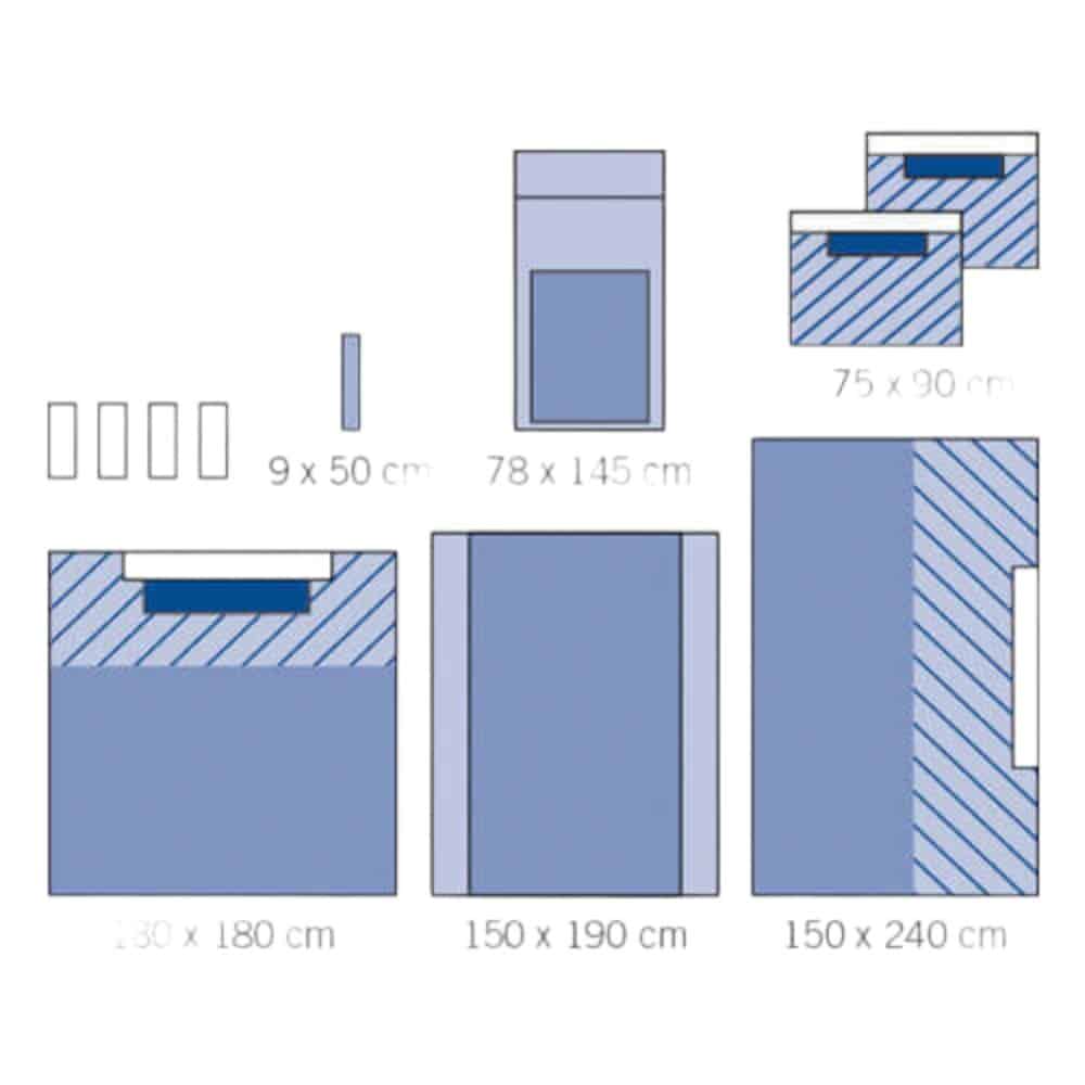 - Door alle benodigde afdekmaterialen in één pakket te leveren, bespaart het afdekpakket tijd bij de voorbereiding van operaties en zorgt het voor een gestroomlijnd proces.