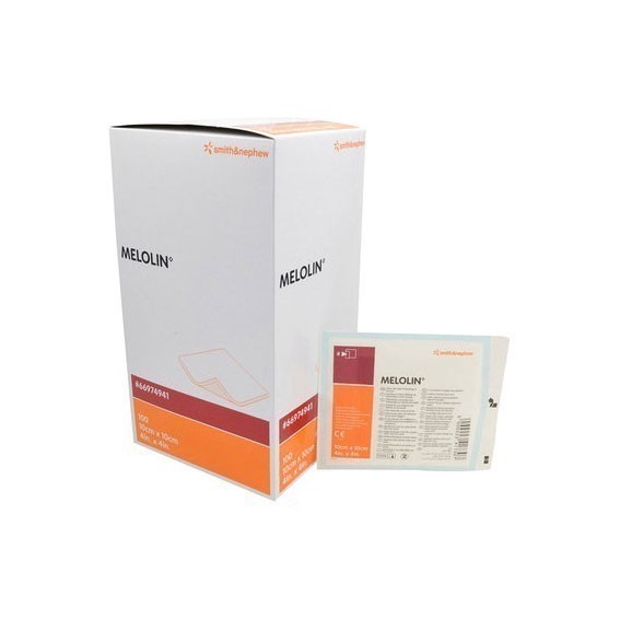 Melolin is een uitstekend absorberend wondkussen van katoen/acryl dat aan één zijde is voorzien van een zeer dunne, geperforeerde polyester film. Deze