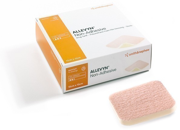 Allevyn Non-Adhesive is een niet-klevend schuimverband met een gepatenteerde trilaminaatstructuur bestaande uit een hydrocellulaire kern, een geperforeerde