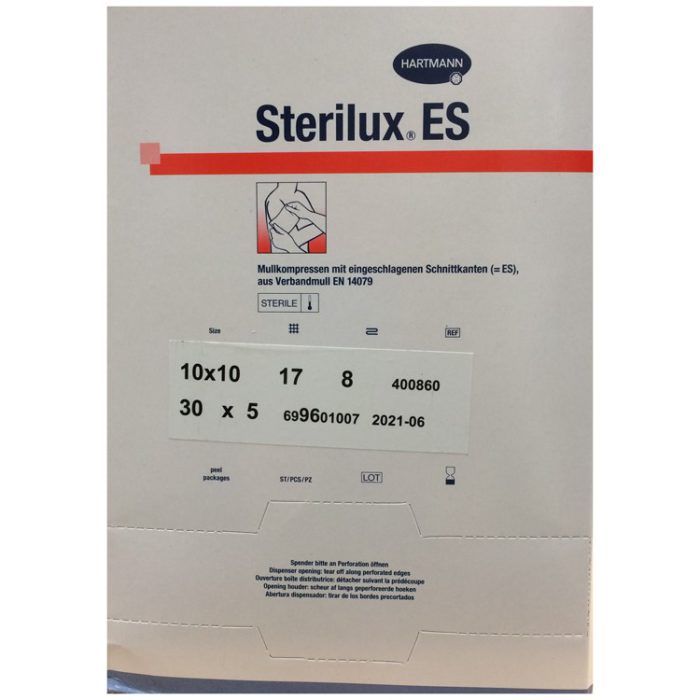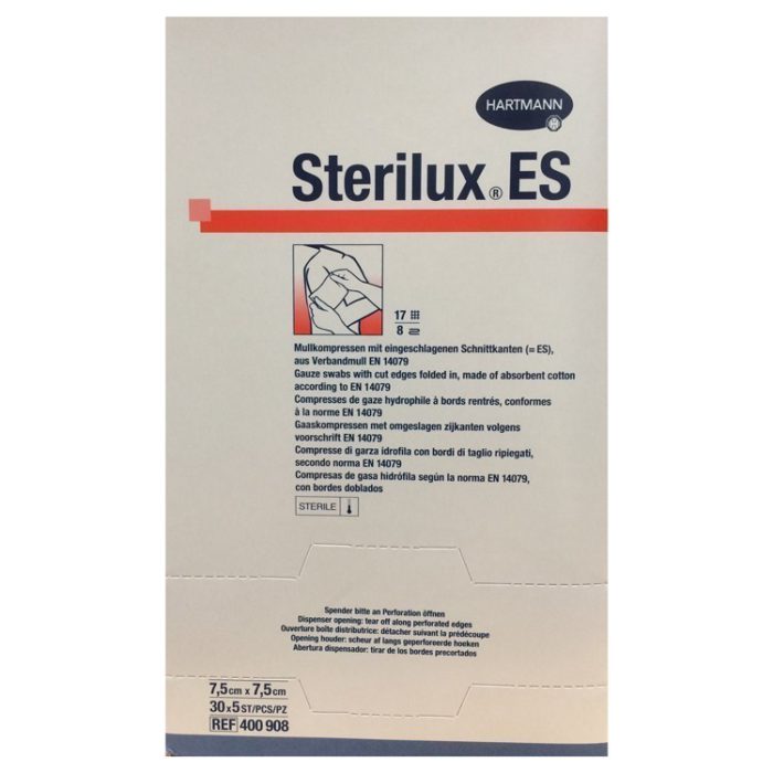 Sterilux® ES gaaskompressen zijn samengesteld uit absorberend gaas van 100% katoen, conform de norm EN 14079, en zijn voorzien van een zelfkantafwerking (ES), waardoor