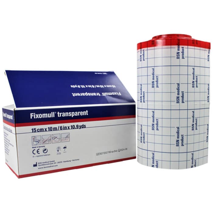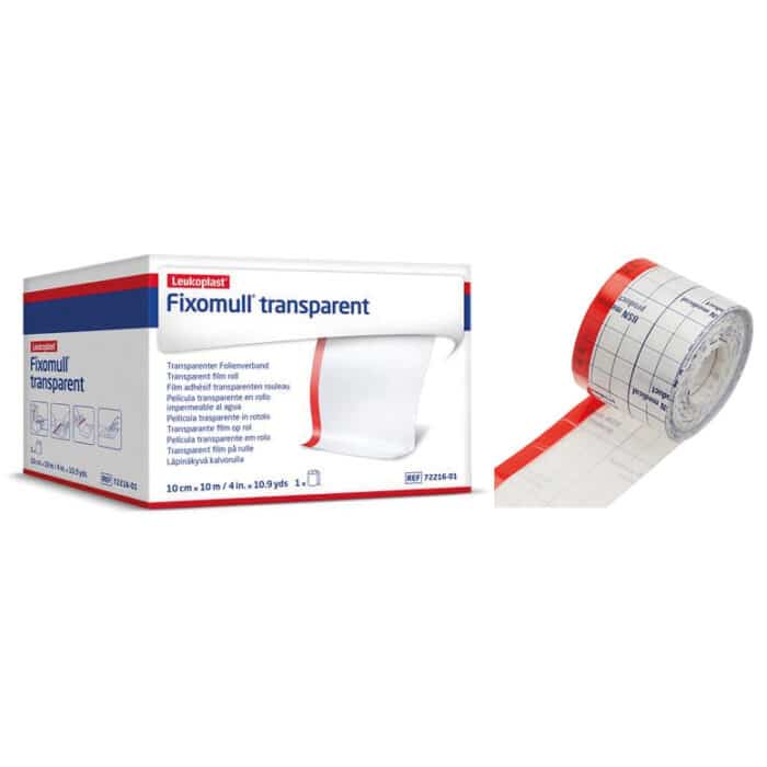 Fixomull® Transparent is een transparante, waterdichte fixatiefolie op rol die gebruikt wordt voor het fixeren van verbanden, kompressen, sondes, katheters en slangen.