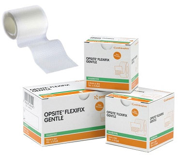 helpt bij het voorkomen van doorligwonden. Op-site Flexifix Gentle wordt gebruikt voor het fixeren van primaire verbanden en leidingen, het verminderen van pijn bij