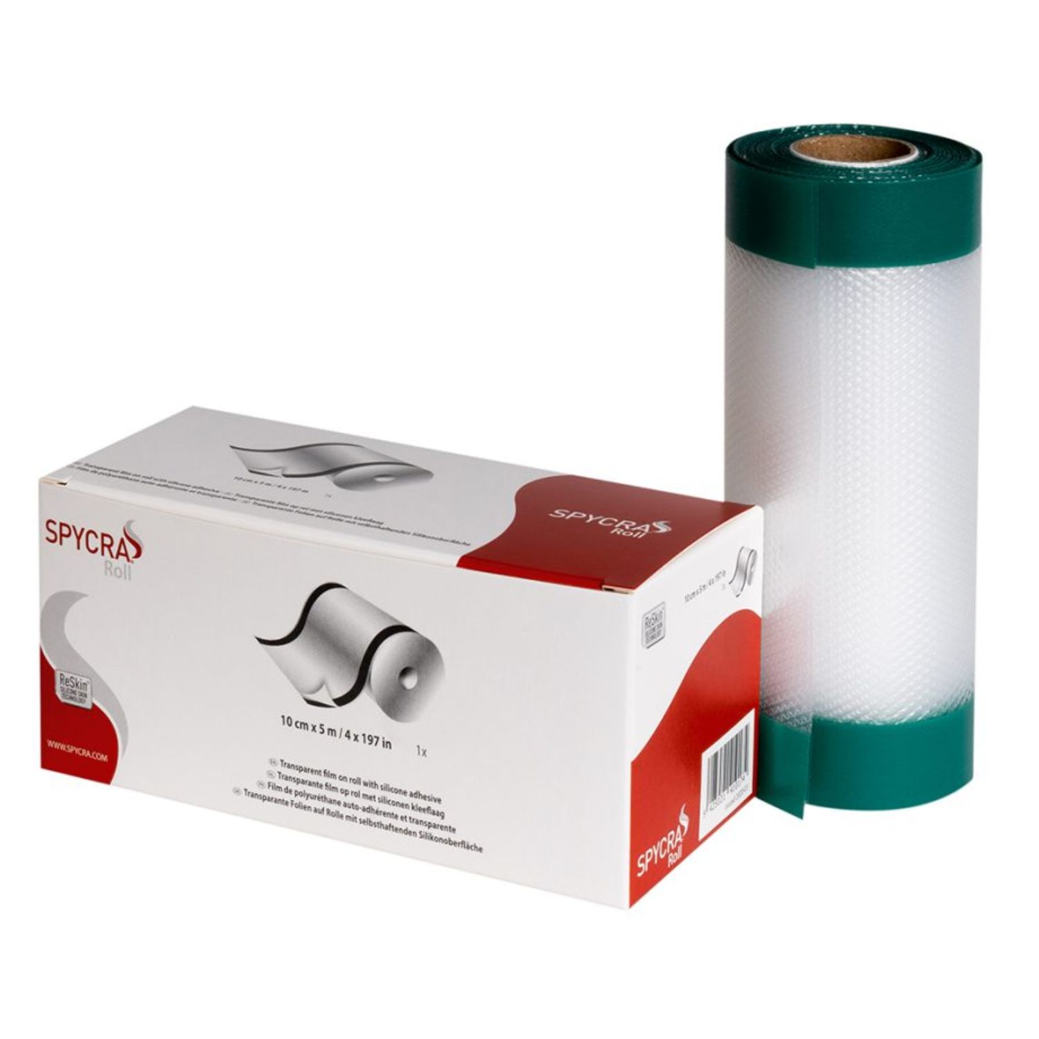Spycra Roll is een dunne transparante polyurethaan film met een zacht klevende silicone hechtlaag ontworpen om fragiele en gevoelige huid te beschermen. Bovendien minimaliseert Spycra Roll het risico op huidletsels bij verbandwissels. Spycra Film op rol zeer soepel en past zich perfect aan huid- oneffenheden en lichaamscontouren. Spycra Roll zorgt voor een soepele transparante afdekking en beschermt de huid of de wonde tegen microbiële of externe besmettingen en tegen vochtinfiltratie. Spycra Roll is luchtdoorlatend en ondersteunt de wondheling volgens het principe van vochtige wondheling. Spycra Roll absorbeert geen wondvocht. Spycra Roll kan gebruikt worden als een primair verband of kan gebruikt worden in combinatie met andere producten. Spycra Roll kan op maat verknipt worden zodat het uitermate geschikt is voor zowel grote als kleine zones.